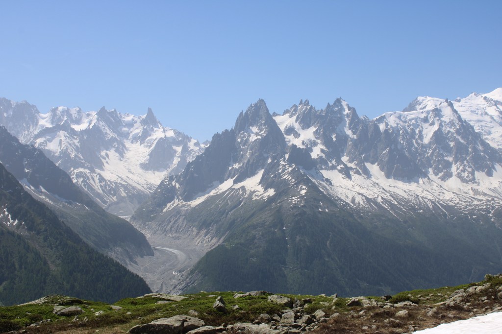 La randonnée débute au Col des Montets. J’appréhende un peu la difficulté mais je me rend vite compte qu’avoir une vue sur la mer de Glace, l’Aiguille du midi, des glaciers,… rend la randonnée incroyable !
