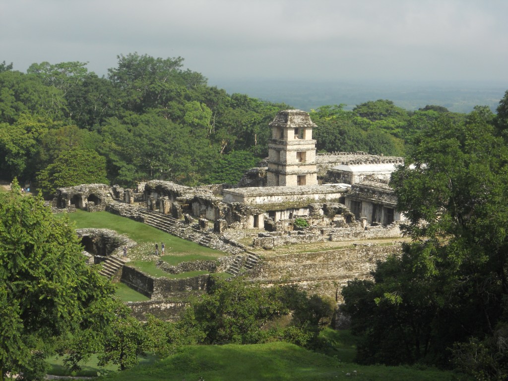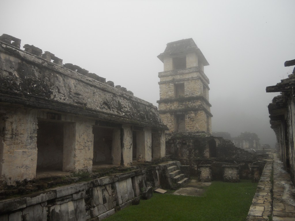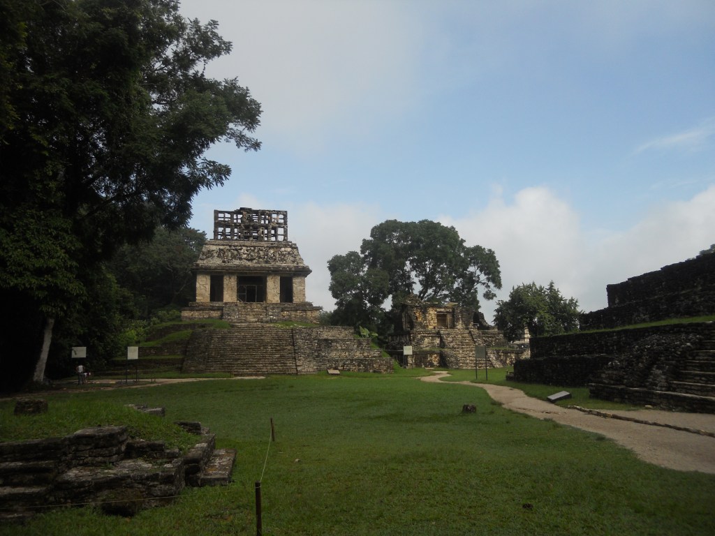 Le Palacio est l’autre monument important du site. Il servait à des cérémonies religieuses et aux tâches administratives. De très belles inscriptions se voient sur les murs. La tour, bâtiment phare de Palenque, était destinée à l’observation du ciel.