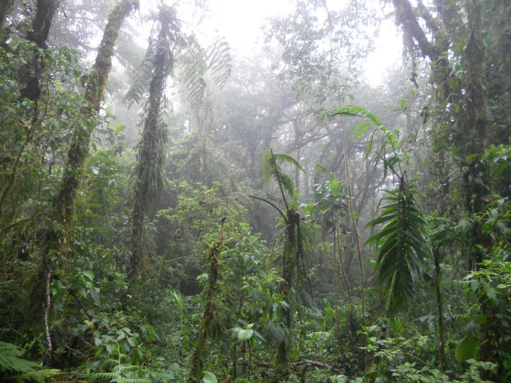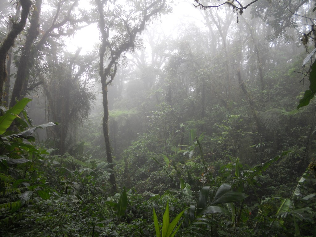 Comme le veut le climat, j’ai passé une journée dans la brume et sous une pluie fine à Monteverde ! Ce qui était génial, c’est que j’avais vraiment l’impression d’être seule dans une forêt tropicale ! Contrairement à ce qui se dit, je n’ai pas vu autant d’animaux que prévu. Mais les oiseaux que j’ai vus étaient magnifiques !